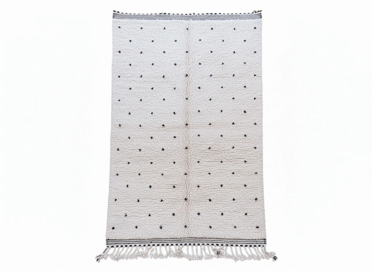 The Black Dotted Beni Ourain Rug is perfect for adding a touch of sophistication to your living room, bedroom, or any space that needs a stylish update. Its neutral tones and minimalist design make it a versatile piece that complements both contemporary and traditional interiors.