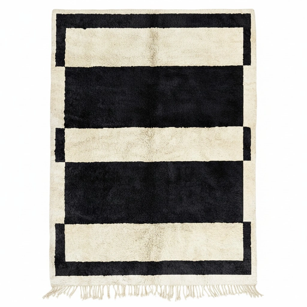 Elevate your space with our Black and Cream Wool Rug, a handwoven masterpiece crafted from 100% natural Moroccan wool.